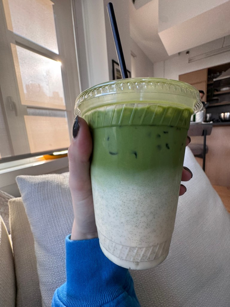 This was your typical Blank Street matcha. Points off because I had to take out the straw given I had just gotten my wisdom teeth out and you’re not allowed to use straws. And then I made a mess! My own fault though.