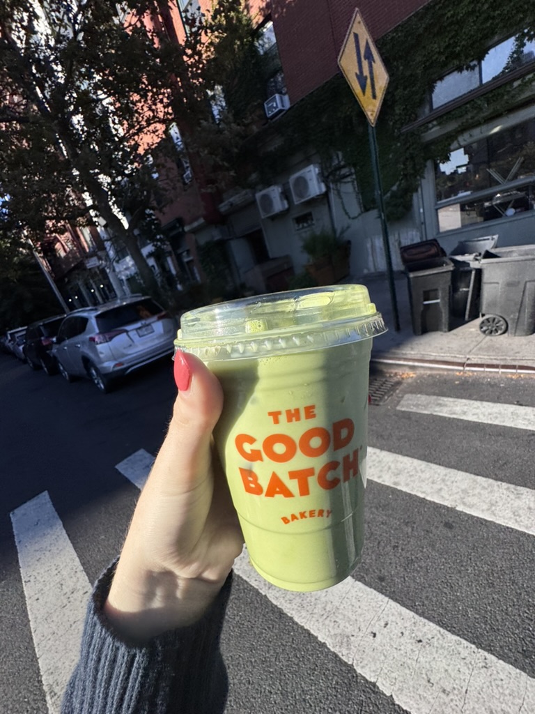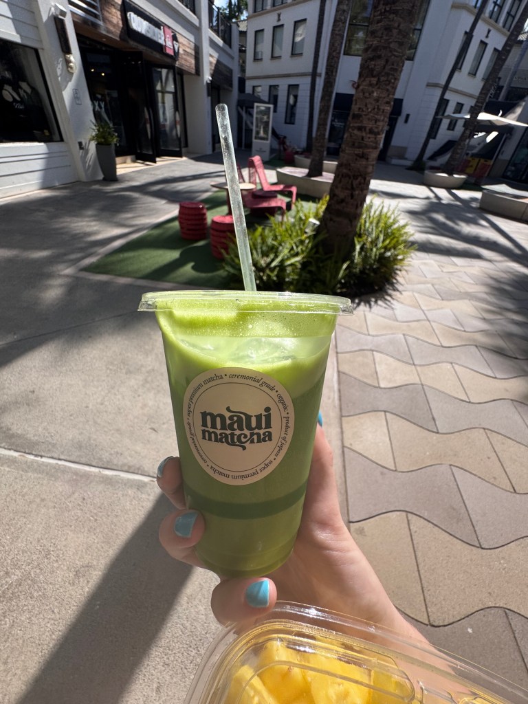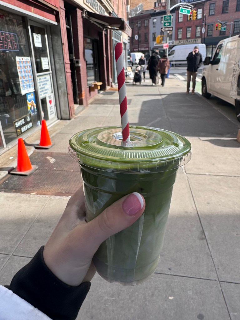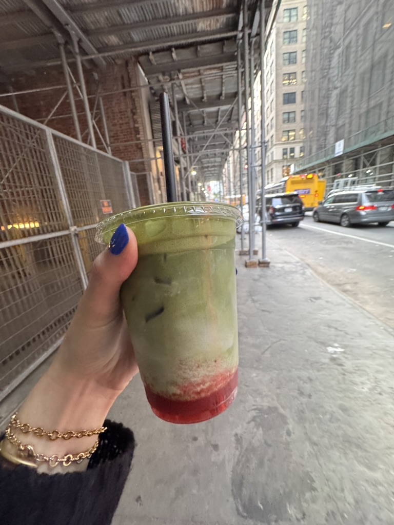 This was my first time having matcha in a smoothie. It has almond milk, matcha, spinach, banana, dates, vanilla, blue spirulina, plant protein, and probiotic coconut yogurt. I was hungry before work and got the smoothie with the most calories and it happened to include matcha. It pleasantly surprised me and wasn’t too sweet, I would recommend except points off because it was $15 and society cannot justify a $15 beverage.