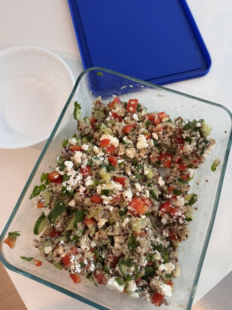 I’m making this quinoa salad, with cucumber, red pepper, cilantro, and feta. I just figured out how to make quinoa and it’s a game changer. I’m so sick of making one lunch and eating it all week though so that’s kind of disappointing.
