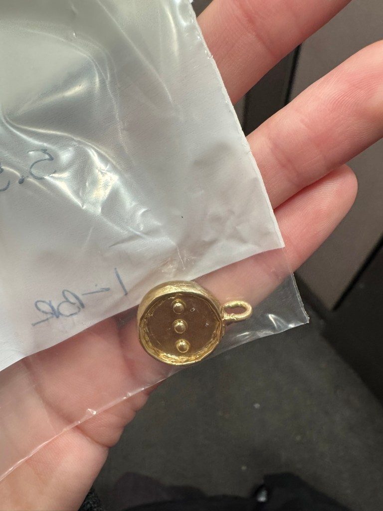 I made this charm in my new metal working class from scratch! You carve it out of wax and then take it to a caster, who magically turns it into metal! So awesome.